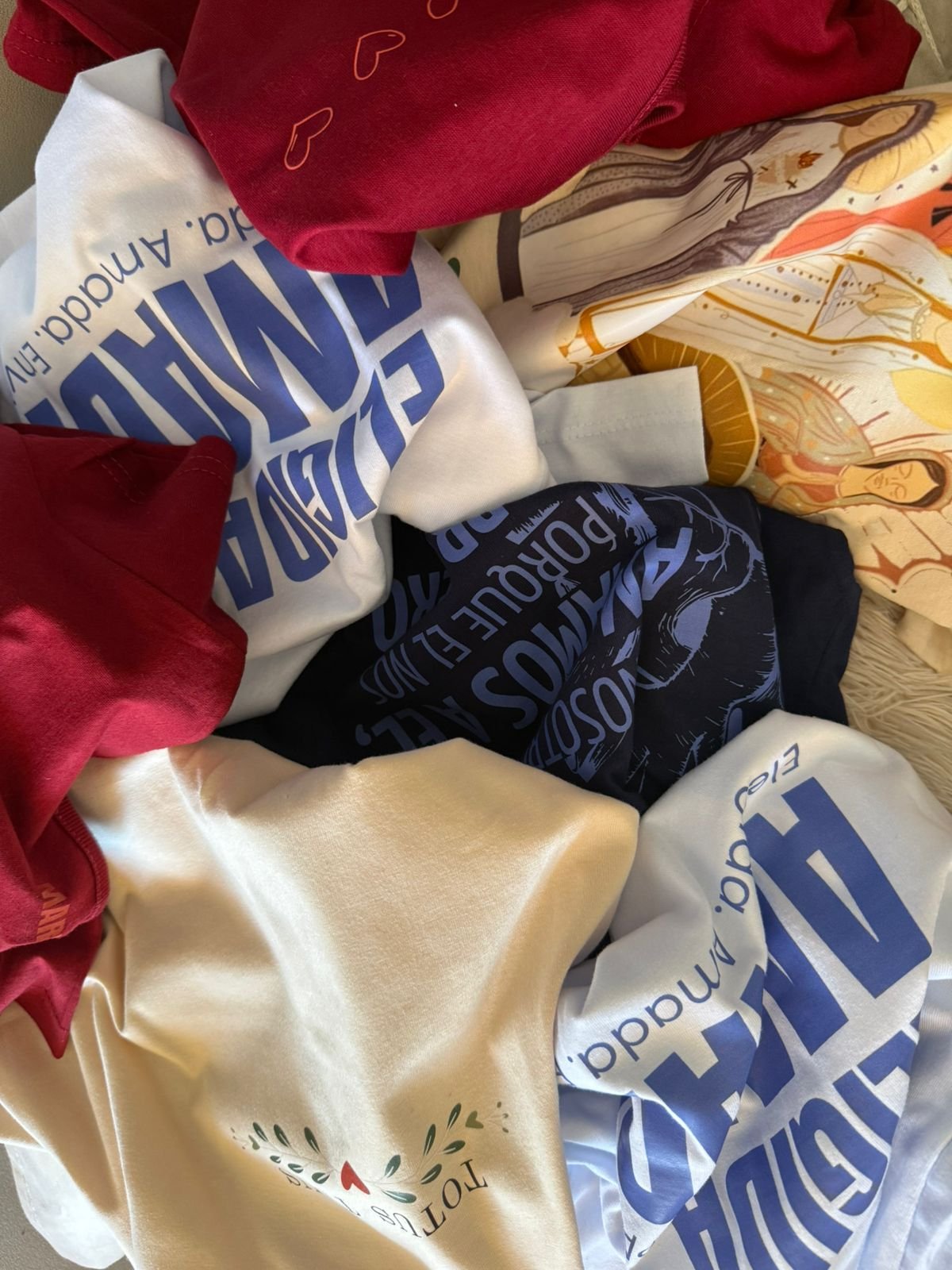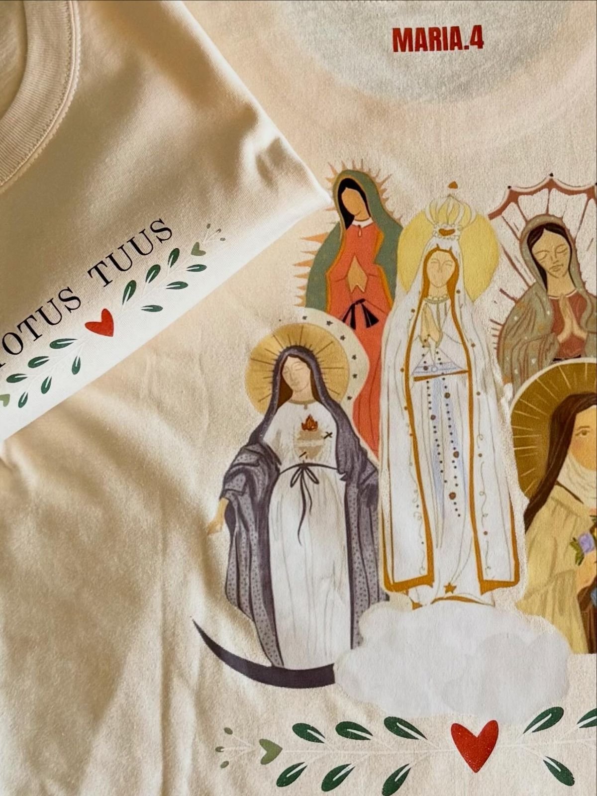 En María.4 creemos que la fe no necesita ser explicada todo el tiempo, sino vivida. Cada prenda y cada objeto nace con la intención de acompañar lo cotidiano, de estar presente en lo simple y en lo real.